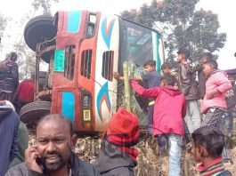 গাইবান্ধায় বাস উল্টে আইনজীবী নিহত, আহত আরও ১২ জন