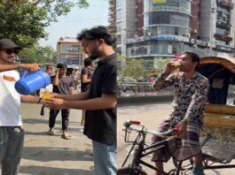 রাস্তায় শরবত হাতে যুবলীগ নেতা তামজিদ