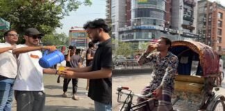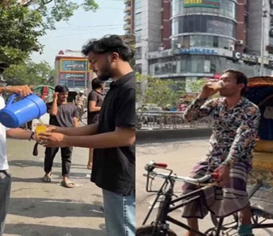 রাস্তায় শরবত হাতে যুবলীগ নেতা তামজিদ