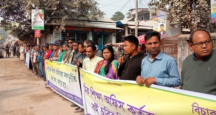 রোববার (২২ জানুয়ারি) দুপুরে সুন্দরগঞ্জ পৌর শহরের বঙ্গবন্ধু চত্বরে উপজেলার সচেতন নাগরিক সমাজের আয়োজনে এ মানববন্ধন অনুষ্ঠিত হয়। এতে উপজেলার বিভিন্ন শ্রেণি-পেশার মানুষ অংশগ্রহণ করেন।