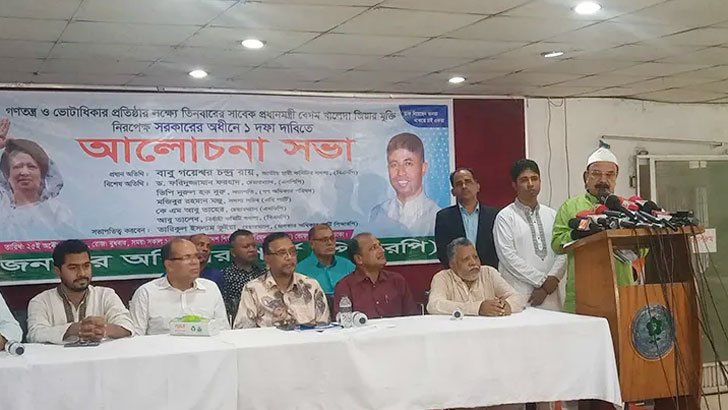 আজ বুধবার দুপুরে বাংলাদেশ শিশু কল্যাণ পরিষদে জনতার অধিকার পার্টির (পিআরপি) উদ্যোগে ‘গণতন্ত্র ও ভোটাধিকার প্রতিষ্ঠার লক্ষ্যে বিএনপি চেয়ারপারসন খালেদা জিয়ার মুক্তি এবং নিরপেক্ষ সরকারের অধীনে এক দফা দাবিতে’ এক আলোচনা সভায় আগামী ২৮ অক্টোবর মহাসমাবেশ প্রসঙ্গে তিনি এসব কথা বলেন।