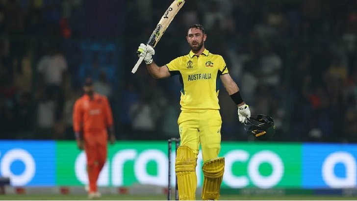 ইনিংসের একেবারে শেষ দিকে ৪০ বলে তিন অঙ্কের ম্যাজিক ফিগার স্পর্শ করেন ম্যাক্সওয়েল। বাস ডি লিডের বলে ছয় মেরে করেন বিশ্বকাপের নতুন রেকর্ড। ভেঙ্গে দেন ১৮ দিন আগে গড়া এইডেন মার্করামের রেকর্ডকেও।