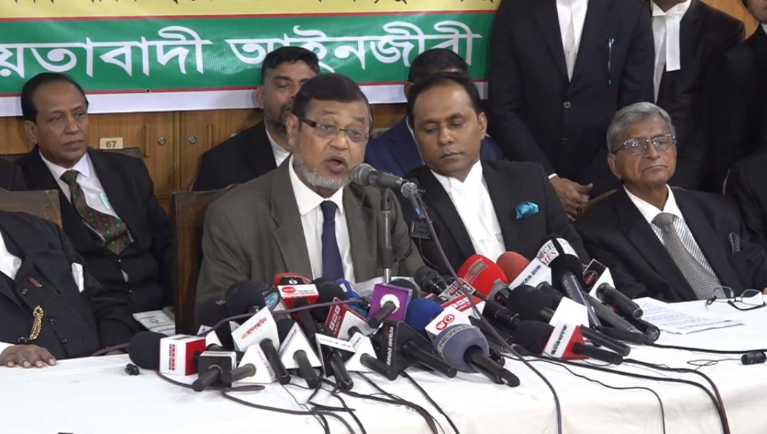 আজ বুধবার দুপুরে বার ভবনে এক সংবাদ সম্মেলনে এ ঘোষণা দেয় বাংলাদেশ জাতীয়তাবাদী আইনজীবী ফোরাম। সংবাদ সম্মেলনে এ ঘোষণা দেন জাতীয়তাবাদী আইনজীবী ফোরামের মহাসচিব ব্যারিস্টার কায়সার কামাল।
