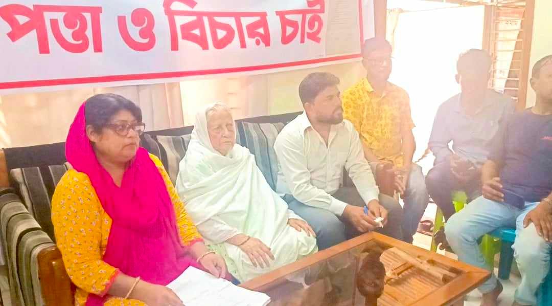 নেত্রকোনায় সরকারের কাছে নিরাপত্তা ও বিচারের দাবিতে সংবাদ সম্মেলন করেছে বিচারপ্রার্থী দম্পতি।