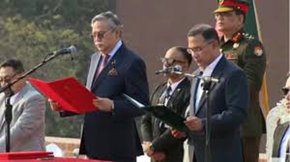 ত্রয়োদশ জাতীয় সংসদ নির্বাচনে জয়ী হয়ে বাংলাদেশের ১১তম প্রধানমন্ত্রী হিসেবে শপথ গ্রহণ করেছেন বিএনপির চেয়ারম্যান তারেক রহমান। রাষ্ট্রপতি মো. সাহাবুদ্দিন তাকে শপথ বাক্য পাঠ করান। পরে প্রধানমন্ত্রী হিসেবে গোপনীয়তার শপথও পাঠ করানো হয়।