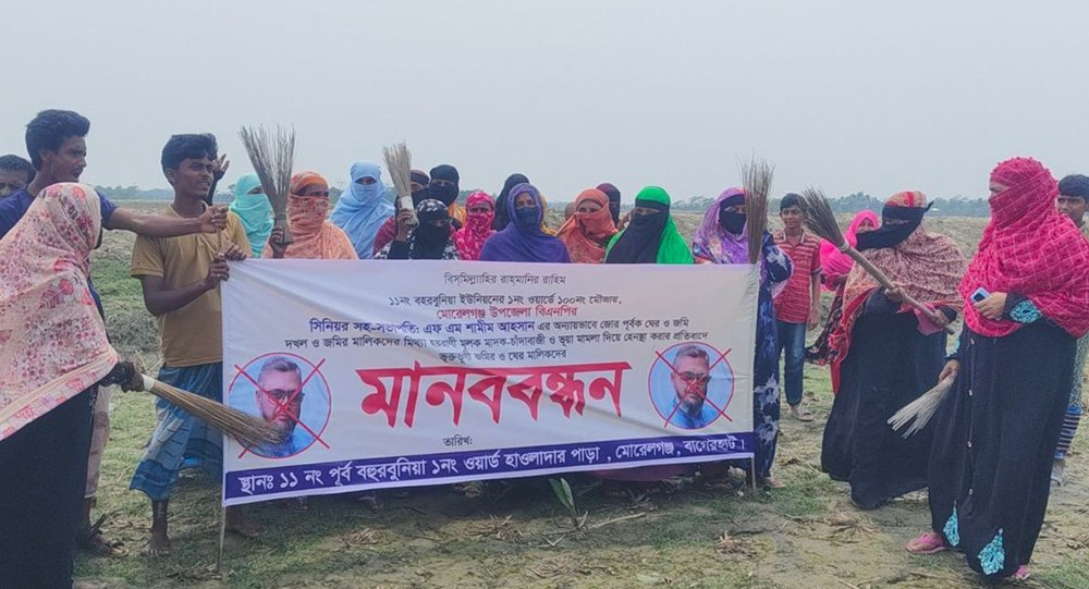 জমি ও মৎস্য ঘের জোরপূর্বক দখলের অভিযোগে বাগেরহাটের মোরেলগঞ্জ উপজেলায় বিএনপির সিনিয়র সহ-সভাপতি এফ এম শামীম আহসানের বিরুদ্ধে মানববন্ধন ও ঝাড়ু মিছিল করেছেন ভুক্তভোগী জমির মালিকরা। অভিযুক্ত নেতার দলীয় বহিষ্কারসহ প্রশাসনের হস্তক্ষেপ দাবি করেছেন।