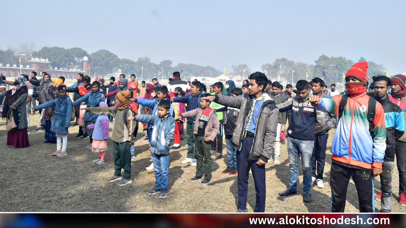 যাদব চন্দ্র রায়,বিভাগীয় ব্যুরো চীফ, রংপুর: দিনাজপুর জেলা প্রশাসনের আয়োজনে বর্ণাঢ্য ও জাকজমকপূর্ণভাবে ৯ জানুয়ারী ২০২৩ সোমবার সকাল ১১ টায় গোর-এ-শহীদ ঈদগাহ মাঠে ১০ম বার্ষিক বিভাগীয় ক্রীড়া প্রতিযোগিতা-২০২৩ এর উদ্বোধন করা হয়েছে। ফিতা কেটে উক্ত খেলার উদ্বোধন করেন অনুষ্ঠানের প্রধান অতিথি জেলা প্রশাসক খালেদ মোহাম্মদ জাকী। অনুষ্ঠানে সম্মানিত অতিথি ছিলেন জোনাল সেটেলমেন্ট অফিসার মোঃ শামসুল আযম। অতিরিক্ত জেলা প্রশাসক (শিক্ষা ও আইসিটি) দেবাশীষ চৌধুরীর সভাপতিত্বে বিশেষ অতিথি ছিলেন জেলা পরিষদের প্রধান নির্বাহী কর্মকর্তা মোঃ জয়নুল আবেদীন, স্থানীয় সরকার দিনাজপুরের উপপরিচালক (ডিডিএলজি) মোঃ মোখলেছুর রহমান।